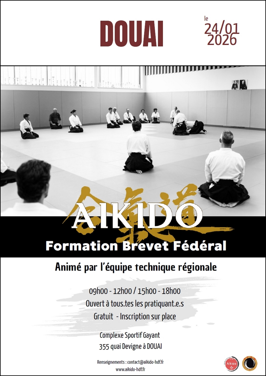La Ligue Hauts de France d’Aïkido organise samedi 24 janvier 2026 un stage de formation au Brevet Fédéral, qui sera animé par l’équipe technique régionale.  Il se tiendra de 9h à 12h et de 15h à 18h, à Douai.