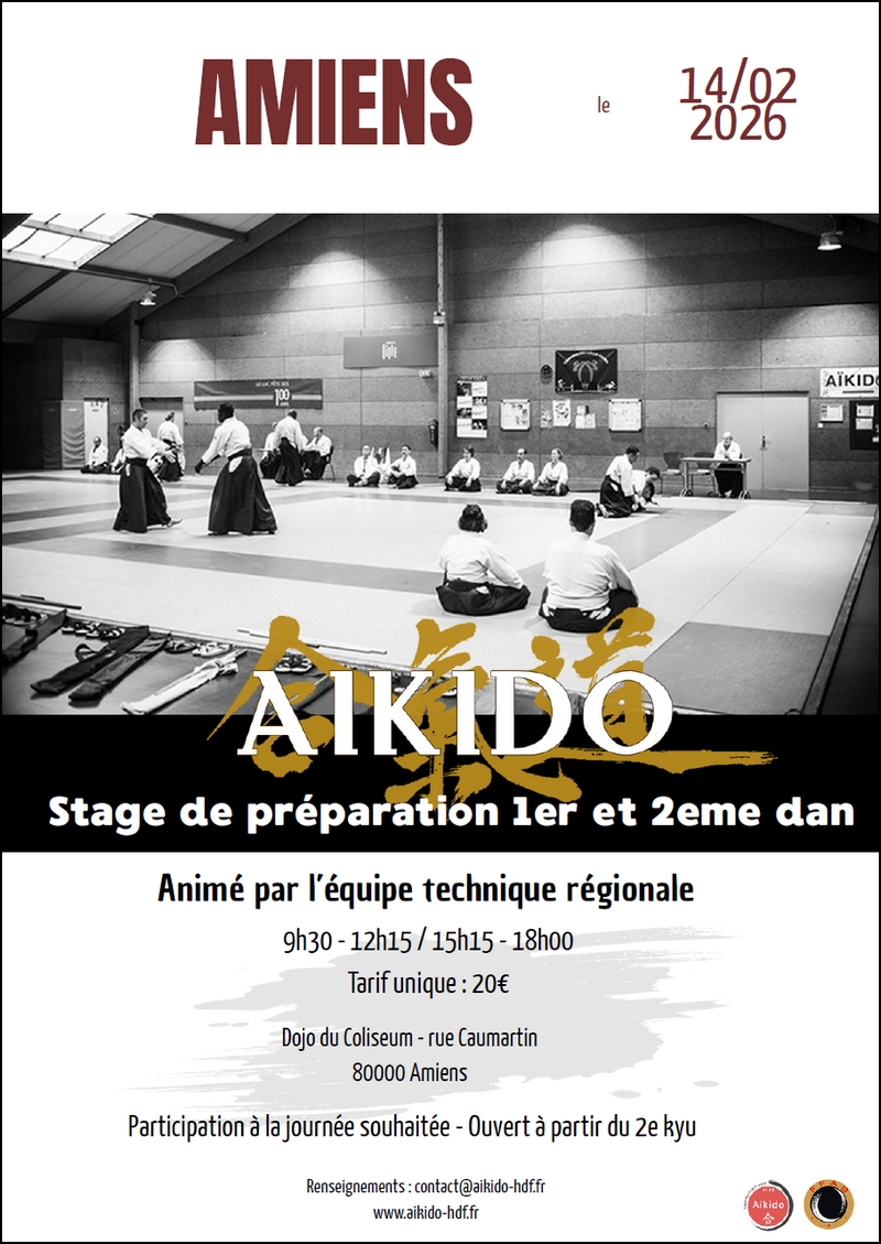 La Ligue Hauts de France organise le samedi 14 février 2026 un stage spécifique de préparation aux 1° et 2° dan, qui se déroulera à Amiens (Coliseum). Horaires : 9h30 / 18h (participation prévue à la journée complète).
